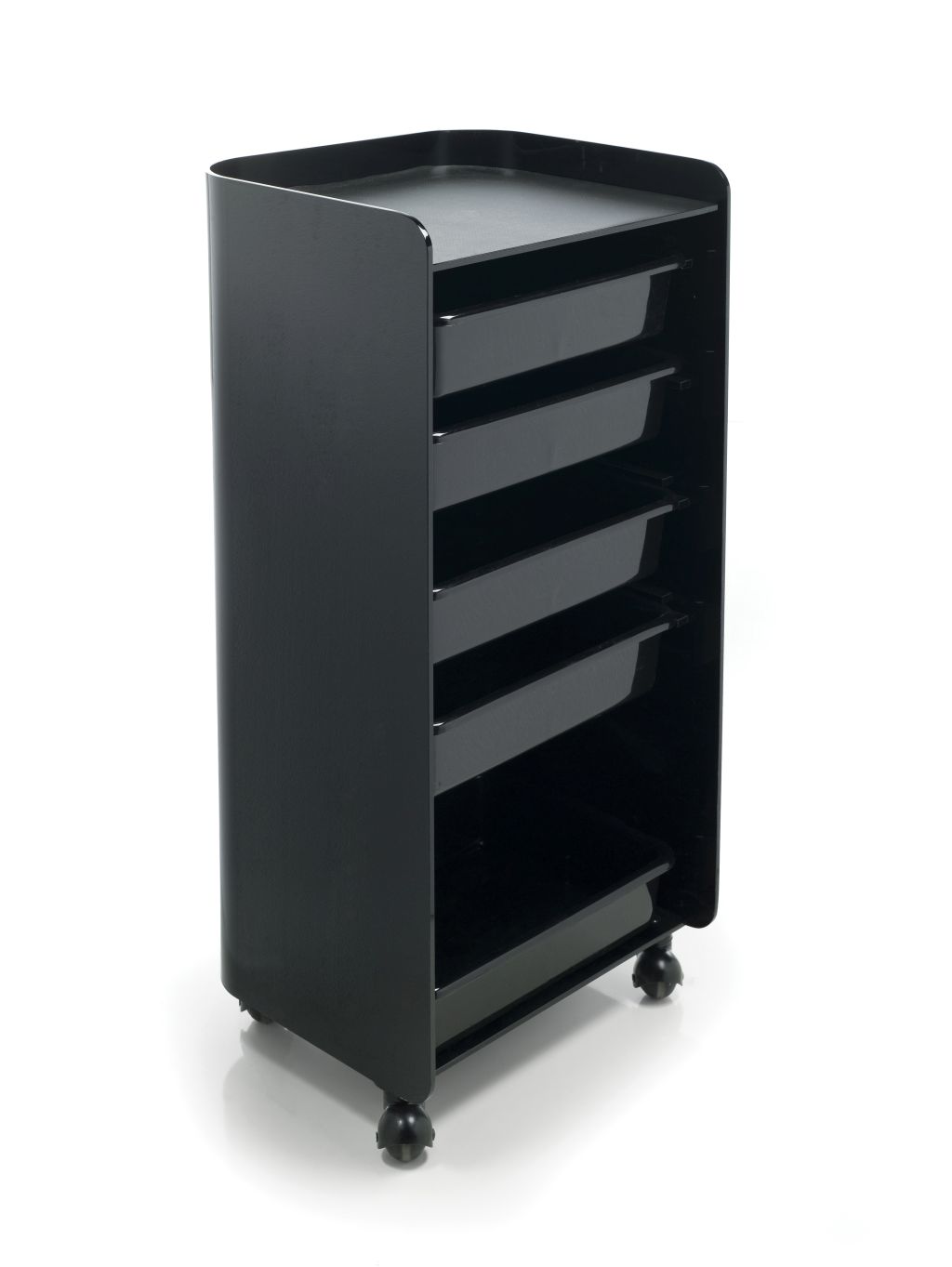 Carrito de metacrilato en negro o blanco, de la colección privada Marcel Wanders. Ideal para profesionales que necesiten almacenar y tener a mano utensilios de trabajo.
