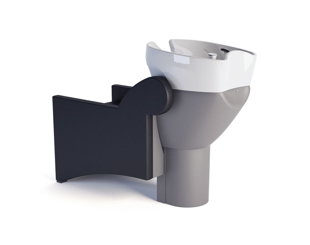 Lavacabezas con teja basculante de color blanco, gris o negro. Estructura principal de metal galvanizado con recubrimiento de plastico ABS color gris. Asiento con acolchado en espuma poliuretánica resistente tapizado en skai (imitación cuero). Posición ergonómica del asiento. Opcional: reposapiés eléctrico, sistema de masaje AIR SHIATSU.