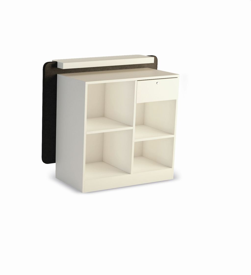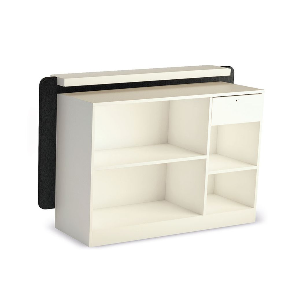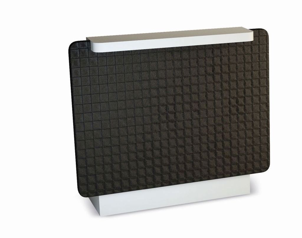 Mostrador de recepción con frontal en skai negro CPT (efecto capitonné). Anchura opcional (90 cms, 150cms). Opcional mueble en color blanco o negro opcional.