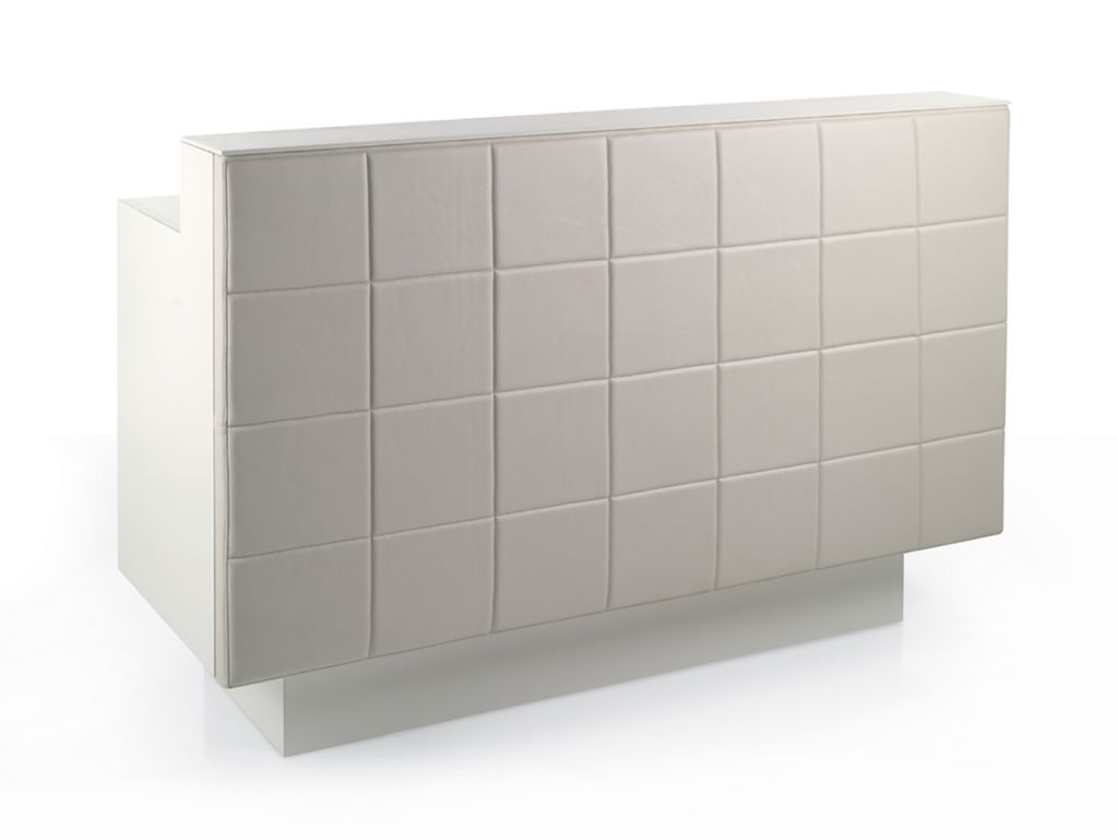 Recepción con frontal en estilo capitoné tapizado en skai.