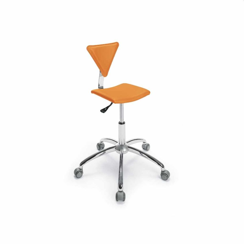 Taburete con ruedas y bomba a gas para ajustar su altura.