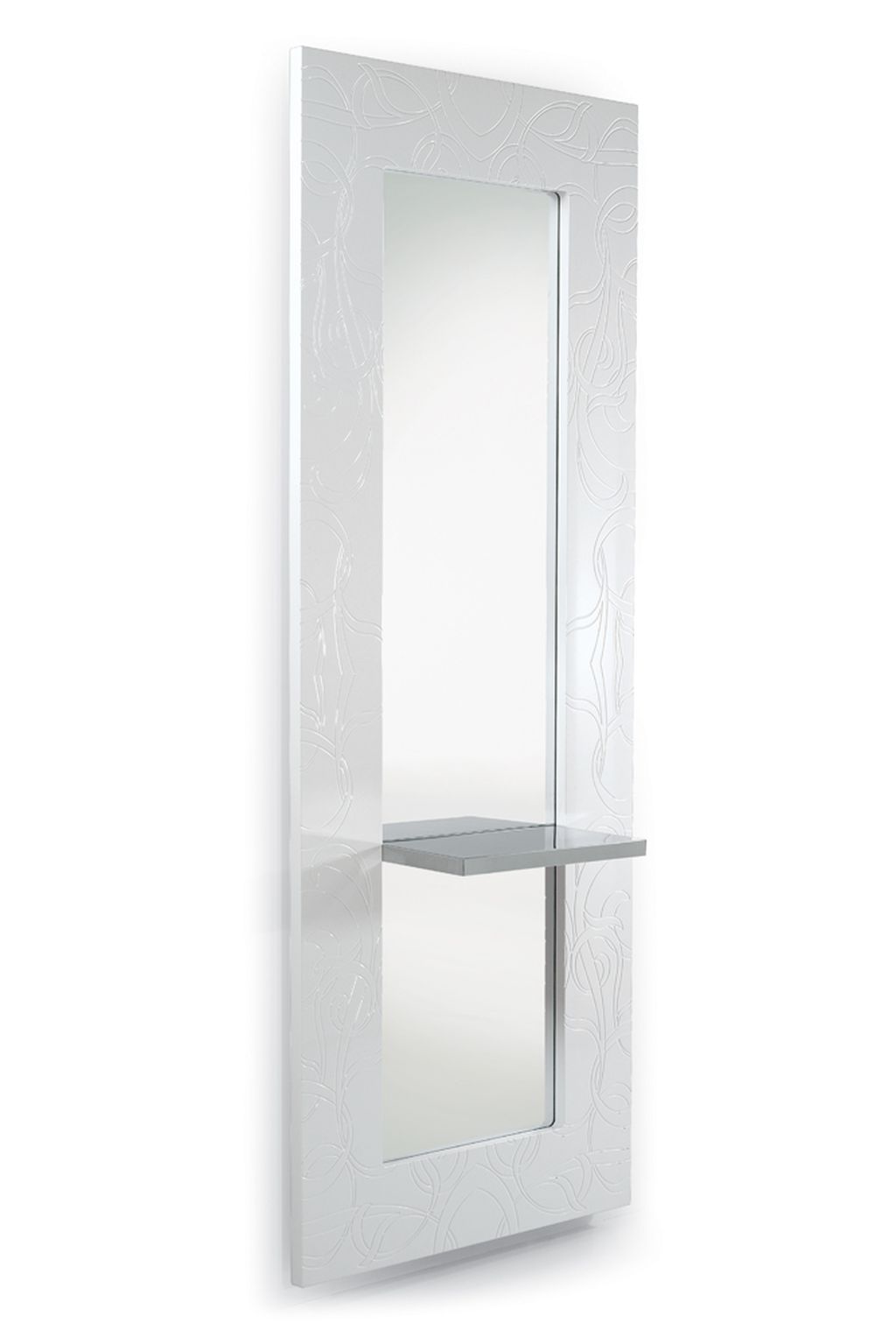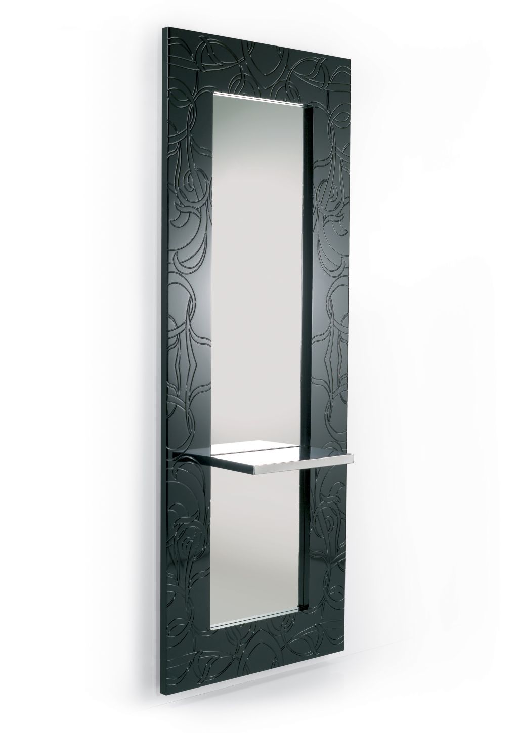 Tocador de pared con marco decorado en blanco o negro brillo con repisa. Línea Artform.